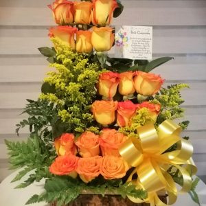 Jarrón artesanal de Ráquira con 24 rosas 32 cm de alto