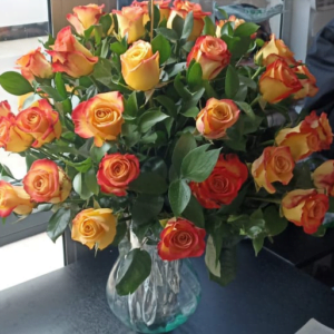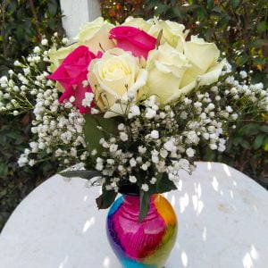 Jarrón vitral mediano artesanal de Ráquira por 50 rosas 35 cm