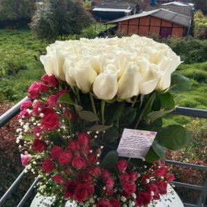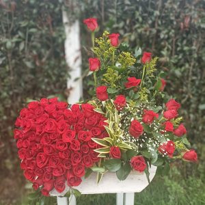 Jarrón colores artesanal de Ráquira con 50 rosas 52 cm