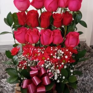 Caja por 24 rosas, media botella de baileys y chocolates